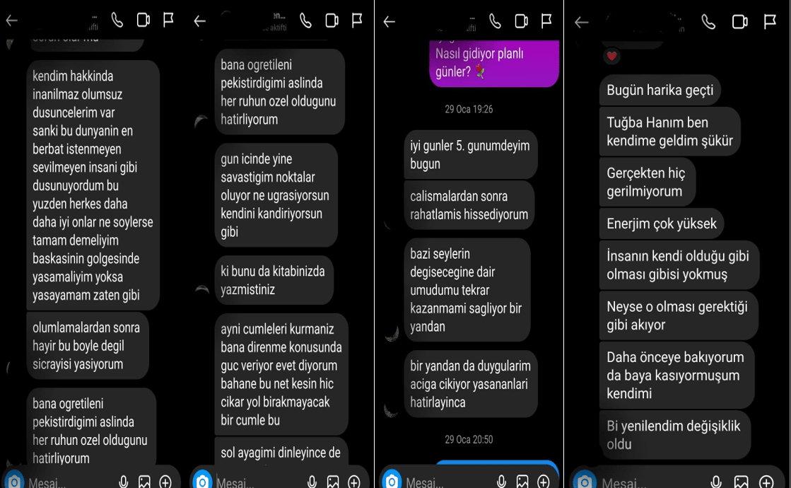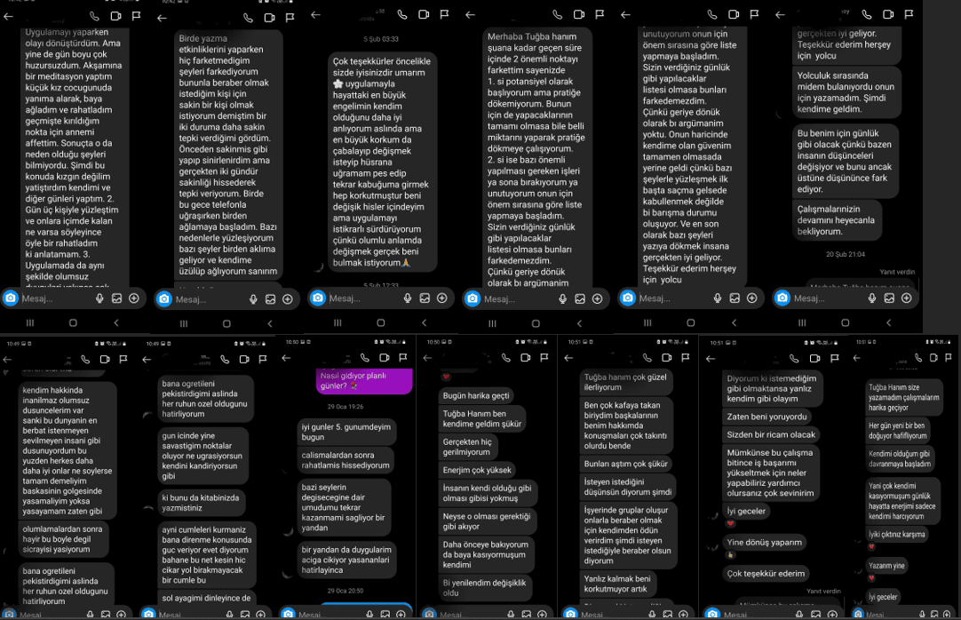 Farkındalık edinmeni sağlarken, sende gerçek bir değişim amaçlayan plandır. Kişisel gelişim kitaplarından farklı olarak sana sadece tavsiyeler vermez, yapman için yol gösterir, uygulattırır ve bu esnada yanında olarak sana destek olur.